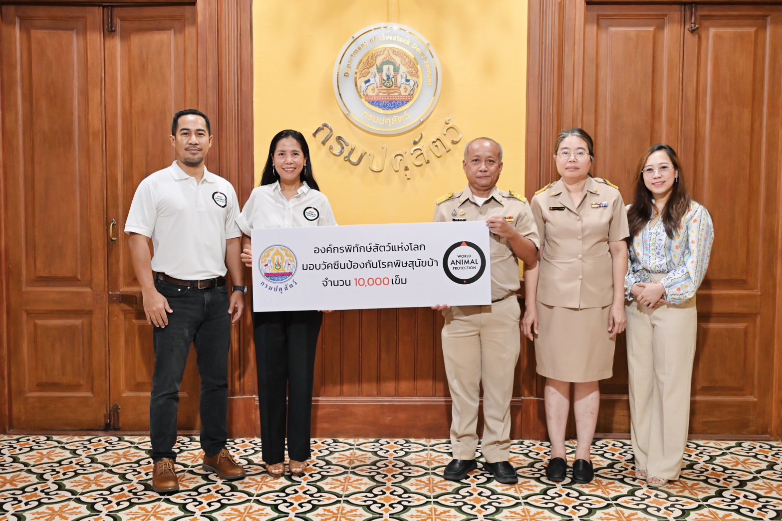 สำนักควบคุม ป้องกันและบำบัดโรคสัตว์ พร้อมด้วยผู้แทนจากกลุ่มควบคุมป้องกันโรคสัตว์เลี้ยง รับมอบวัคซีนป้องกันโรคพิษสุนัขบ้าจากองค์กรพิทักษ์สัตว์แห่งโลก ประเทศไทย (World Animal Protection)